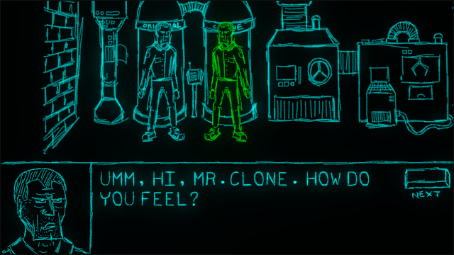 You wake out in a small room. You have to escape, but there's a catch: you need two people to open the door, and there's only one of you. Fortunatelly, there's a lot of cool stuff in this room, including a Cloning Chamber, which grants you a possibility to duplicate yourself. With all that gear, escaping from this damn room should be a piece of cake, right? RIGHT?